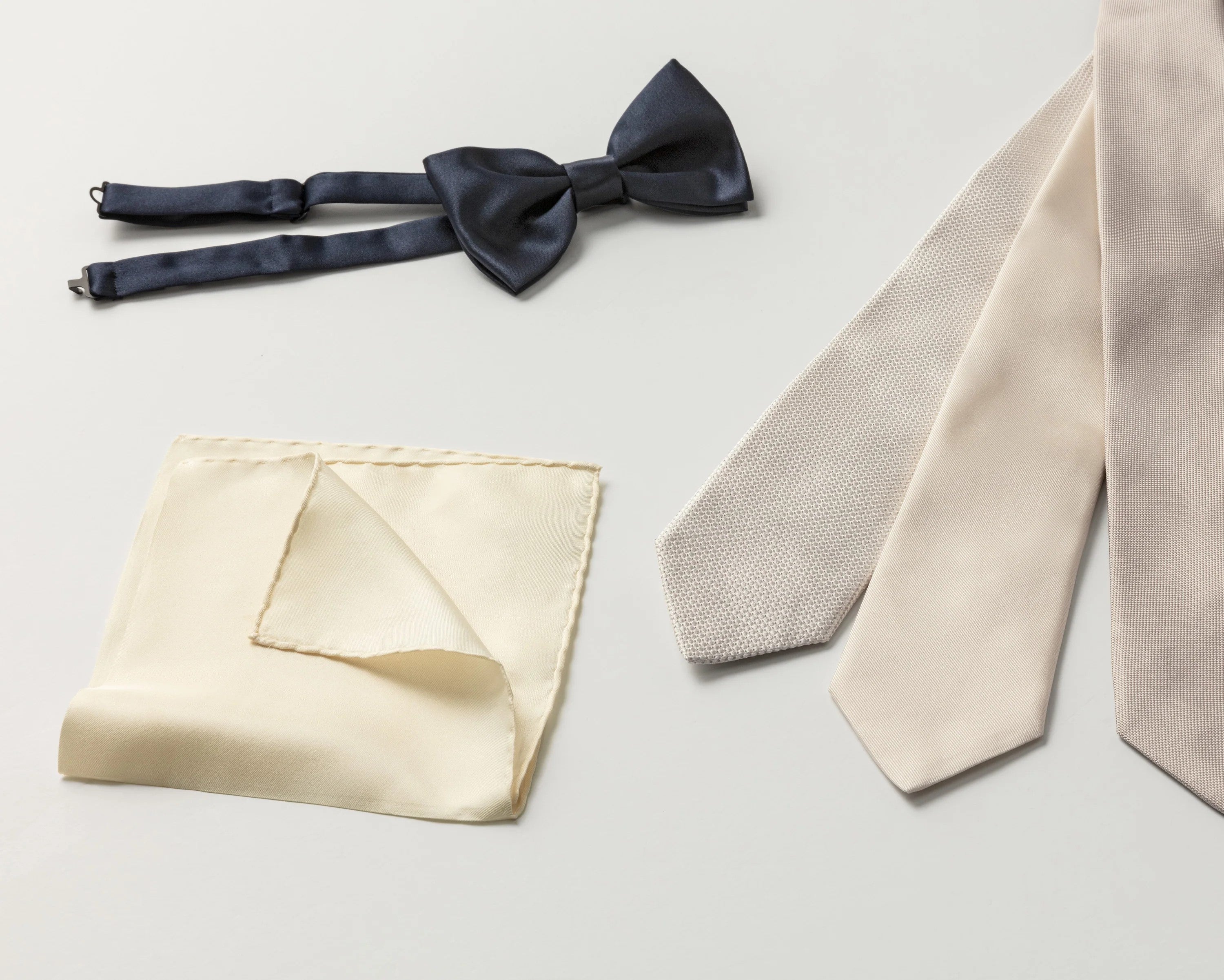 Yes! Want your groomsmen to have a special moment or match on your special day? You can make custom ties out of your suit fabric, embroider initials into ties or pocket squares and more. You dream it, we can make it.